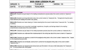 Sizler için hazırladığımız, 5. Sınıf "Classroom Life" temasının 10. Hafta Günlük Planı dosyasını sunmaktan mutluluk duyarız. 📝