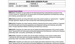 Sizler için hazırladığımız, 5. Sınıf "Personal Life" temasının 11. Hafta Günlük Planı dosyasını sunmaktan mutluluk duyarız. 📝
