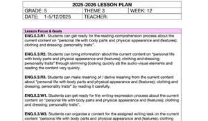 Sizler için hazırladığımız, 5. Sınıf "Personal Life" temasının 12. Hafta Günlük Planı dosyasını sunmaktan mutluluk duyarız. 📝