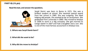 Bu sınav, 7. sınıf İngilizce dersi kazanımlarına göre hazırlanmış olup okuduğunu anlama ve yazma becerilerini ölçmeyi hedefleyen toplam 7 bölümden oluşmaktadır.