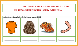 5. Sınıf Çoklu Yabancı Dil BEP (Bireyselleştirilmiş Eğitim Programı) Öğrencileri için 1. Dönem 2. İngilizce Yazılı Sınavı dosyamız.