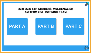 2025-2026 eğitim öğretim yılı 5. Sınıf Çoklu Yabancı Dil 1. dönem 2. listening exam (MultiEnglish) toplam 3 bölümden oluşmaktadır.