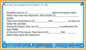 Bu sınavı Türkiye'de ilk kez ortaokulingilizce.net tarafından hazırlanan ve uygulanmaya başlayan sunum destekli olarak uygulayabilirsiniz. Ses parçanlarını hızlandırıp yavaşlatma özelliği vardır.