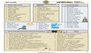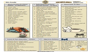 5. sınıf Çoklu Yabancı Dil (MULTI English) programının Theme 4 – Family Life konusuna uygun olarak hazırlanmıştır. Ünite kapsamında öğrenilmesi gereken tüm kelimeler; kategorilere ayrılarak listelenmiştir.