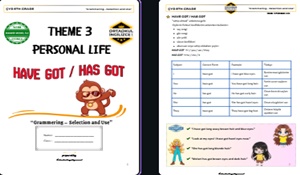 Bu çalışma, 5. sınıf ÇYD ,Theme 3 Personal Life ünitesine yönelik olarak hazırlanmış kapsamlı bir gramer uygulama dosyasıdır. Öğrencilerin özellikle “have got / has got” yapısını doğru ve etkili bir şekilde kullanmalarını hedefler.5 sayfadan oluşmaktadır. Cevap Anahtarı dosyanın içindedir.