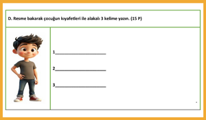 5. Sınıf İngilizce BEP (Bireyselleştirilmiş Eğitim Programı) Öğrencileri için 1. Dönem 2. İngilizce Yazılı Sınavı dosyamız.