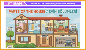 Türkiye Yüzyılı Maarif Modeli kapsamında yenilenen 5. Sınıf İngilizce müfredatının 5. Teması olan "Life in the Neighbourhood & City" ünitesi için hazırladığımız kapsamlı ders notları ve çalışma kağıdı yayında!