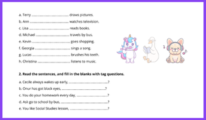 - Soru Ekleri (Tag Questions): "Cecile always wakes up early, doesn't she?" gibi örneklerle öğrencilerin cümle sonu soru kalıplarını (doesn't she, don't you vb.) pekiştirmeleri sağlanır .
