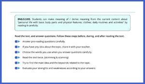 - Okuma Öncesi (Pre-reading) sorularıyla konuya hazırlık .