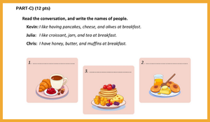 Yummy / Breakfast E6.2.R1. Students will be able to understand short and simple texts about food and preferences.