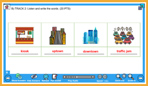 Bu sınavı Türkiye'de ilk kez ortaokulingilizce.net tarafından hazırlanan ve uygulanmaya başlayan sunum destekli olarak uygulayabilirsiniz. Ses parçalarını hızlandırma ve yavaşlatma özelliği de vardır.