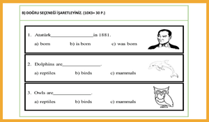 7. Sınıf İngilizce 1. Dönem 2. BEP Yazılısı