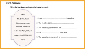 8. Sınıf İngilizce 1. Dönem 2. Reading+Writing Yazılı (Senaryo 5)