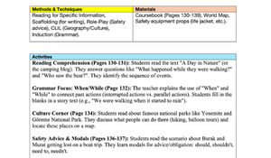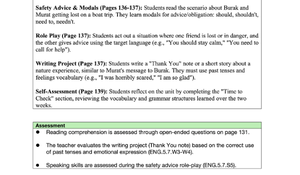 Çeşitli Yöntemler ve Materyaller (Methods & Techniques & Materials): Dinleme, okuma, kelime bilgisi, cümle tamamlama ve yeniden düzenleme gibi farklı öğrenme tekniklerini içeren, ders kitabı, ses kaydı, beyaz tahta gibi materyallerle desteklenmiş bir yapı. 📚