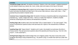 Çeşitli Yöntemler ve Materyaller (Methods & Techniques & Materials): Dinleme, okuma, kelime bilgisi, cümle tamamlama ve yeniden düzenleme gibi farklı öğrenme tekniklerini içeren, ders kitabı, ses kaydı, beyaz tahta gibi materyallerle desteklenmiş bir yapı. 📚
