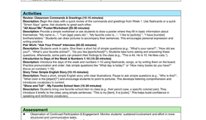 Etkinlikler: Sınıf komutları ve selamlaşmaların tekrarı ile başlanır. "Benim Hakkımda" posteri veya çalışma kağıdı, "Arkadaşına Sor" ikili görüşmesi, Haftanın Günleri ve 1-10 Arası Sayıların tanıtımı, basit bir İngilizce hikaye okuma ve "Göster ve Anlat" etkinliği ile öğrencilerin kendilerini ifade etmeleri ve temel bilgileri kullanmaları teşvik edilir.