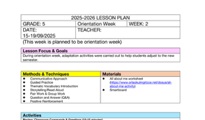 ortaokulingilizce.net olarak, 5. sınıf öğrencilerinizin yeni eğitim öğretim yılına ve İngilizce derslerine kolayca uyum sağlamaları için özel olarak hazırladığımız 1. ve 2. hafta oryantasyon günlük planlarını sunmaktan mutluluk duyarız. Bu planlar, öğrencilerinize İngilizce öğrenmeye keyifli bir başlangıç yapmaları için kapsamlı bir yol haritası sunar.