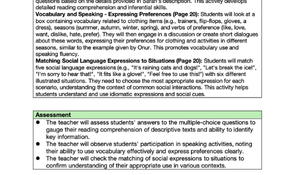 Çeşitli Yöntemler ve Materyaller (Methods & Techniques & Materials): Dinleme, okuma, kelime bilgisi, cümle tamamlama ve yeniden düzenleme gibi farklı öğrenme tekniklerini içeren, ders kitabı, ses kaydı, beyaz tahta gibi materyallerle desteklenmiş bir yapı. 📚