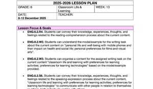 Bu hazır 6. sınıf ingilizce ders planı sayesinde, siz değerli öğretmenlerimiz hem zamandan tasarruf edecek ⏱️ hem de öğrencilerinizin İngilizce'ye olan ilgisini artırarak derslerinizi daha verimli hale getireceksiniz.