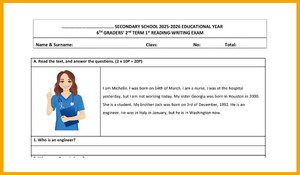 Bu doküman, 6. sınıf İngilizce dersi 2. dönem 1. yazılısı için MEB tarafından belirlenen Senaryo 3 kazanımları esas alınarak ortaokulingilizce.net tarafından hazırlanmıştır. Sınav içeriği, öğrencilerin hem okuma hem de yazma becerilerini dengeli bir şekilde test etmektedir: