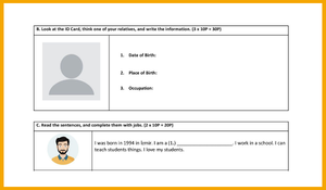 ID Card (Kimlik Kartı) Uygulaması: Öğrencilerin bir akrabası hakkında doğum tarihi, yeri ve mesleği gibi bilgileri yazılı olarak ifade etme becerisi.