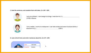 Kimlik Kartı Analizi (ID Card): Verilen bir kimlik kartındaki verilerden (Mechanic, 1985) hareketle anlamlı ve kurallı cümleler kurma çalışması.