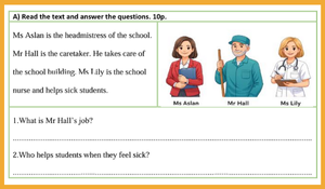 2025-2026 5. sınıf Çoklu Yabancı Dil 1. dönem 2. Yazılı. Sınav; (reading) (writing) kolay seviye olarak hazırlanmıştır.
