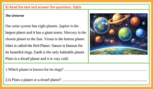 Bu yazılı sınavda öğrencilerin farklı dil becerilerini geliştirmeye yönelik bölümler yer almaktadır: