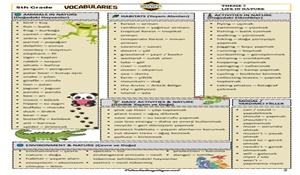 5. Sınıf Çoklu Yabancı Dil Modeli THEME 7 LIFE IN NATURE VOCABULARY LIST