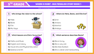 5. Sınıf İngilizce derslerimizde, Çoklu Yabancı Dil Hikaye kitaplarından 1. Kitap kapsamında yer alan "Where is Robi?" hikayesi için hazırladığımız kapsamlı değerlendirme seti yayında!