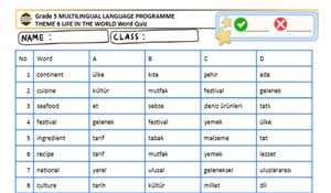 5. sınıf ÇYD İngilizce THEME 6 LIFE IN THE WORLDWord Quiz