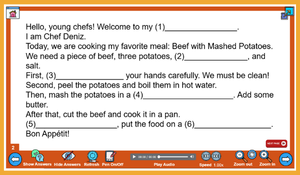 Chef Deniz karakteri ve 3D animasyon desteğiyle hazırlanan bu materyal, 6. Ünite "Life in the World" (Food & Drinks) konusunu kapsar. Öğrencileriniz tarifi izleyerek ve duyarak soruları cevaplar.