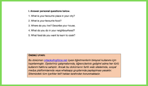 Isınma Soruları (Warm-up): "Tell me one place in your neighbourhood" veya "Say one food you like" gibi öğrencilerin kaygısını azaltacak basit ve kişisel sorular.