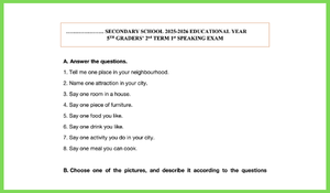 Sınav haftası yaklaşırken, uygulama sınavları için soru hazırlamakla vakit kaybetmeyin! Theme 5 (Life in the Neighbourhood & City) ve Theme 6 (Life in the World / Food) ünitelerini kapsayan, beceri temelli ve Maarif Modeli'ne uygun harika bir konuşma sınavı hazırladık.