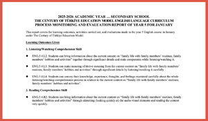 5. Sınıf Maarif Model İngilizce Ocak Ayı Raporu