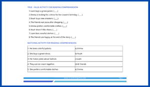 Bu dosya, temanın "Clothes" (Kıyafetler) alt konusuna odaklanan, alışveriş temalı eğlenceli bir okuma metni içeriyor .