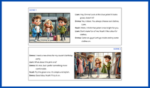 - Diyalog Odaklı: Metin, üç arkadaşın (Emma, Liam ve Noah) alışveriş diyalogları üzerine kurulu . Bu, öğrencilerinizin günlük konuşma kalıplarını görmesi için harika bir fırsat.