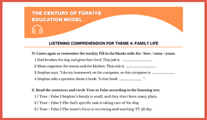 5. Sınıf Maarif Model Listening Comprehension 2 for Theme 4: Family Life