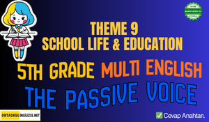 5.sınıf İngilizce Theme 9: School Life & Education ünitesi için hazırlanan bu kapsamlı PDF çalışma dosyası, The Passive Voice (Edilgen Çatı) konusunu sade ve anlaşılır bir şekilde anlatmakta ve pekiştirici etkinlikler sunmaktadır.