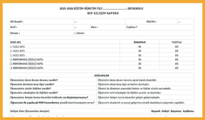 ortaokulingilizce.net olarak, bu süreci sizin için hızlandıracak, kazanımlara uygun, profesyonel bir BEP Gelişim Raporu taslağı hazırladık.