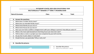 Sınav haftası yaklaşırken, Yabancı Dil Ağırlıklı (Multilingual) 6. sınıf şubeleriniz için öğrencilerin kendilerini ifade etme, empati kurma ve problem çözme becerilerini ölçecek üst düzey bir konuşma sınavı hazırladık!