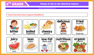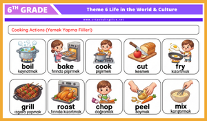Bu çalışma, 6. sınıf Çoklu Yabancı Dil dersi 6. Tema: Life in the World & Culture kapsamında yer alan kelimeleri öğrencilerin daha kolay öğrenebilmesi için hazırlanmış resimli kelime listesi materyalidir.