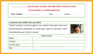 7. Sınıf İngilizce 1. Dönem 2. Yazılı (Kolay Seviye)