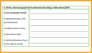 E7.4.W1: Students will be able to write pieces describing wildlife.