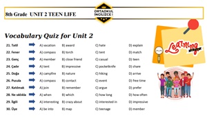 8.SINIF 1. DÖNEM KELİME SINAVLARI (250 SORU)