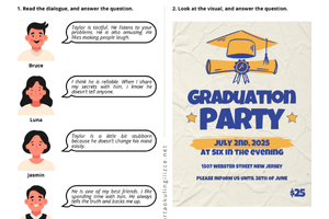 2024-2025 8. sınıf ingilizce yeni kitabına uygun yeni sorularla hazırlanmış 1. ünite deneme sınavı. Tüm kelimeler ve soru tipleri tamamen yeni kitaba uygun bir şekilde hazırlanmıştır. Tamamen günceldir. Cevap anahtarı 5. sayfadadır. Sorular 4 sayfayı kapladığı için çıktı alma şeklinize göre 1 veya 2 kağıt harcar. Ayrıca çok koyu ton renkler kullanılmamıştır. Bu özellikleri ile de kağıt ve toner tasarrufu sağlar.