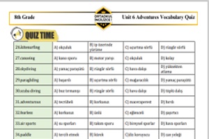 8.Sınıf 6. Ünite ADVENTURES Konu Anlatımı- Çalışma Kağıdı- Kelime sınavı