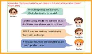 6. Ünite Adventures 4 Bölüm: "E8.6.R1. Students will be able to understand short and simple texts to find the main points about adventures.." ve "E8.6.W1. Students will be able to write a short and simple paragraph comparing two objects"