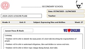 Dosyanın içerisinde 2024-2025 8. Sınıf İngilizce Yıllık Planı da bulunmaktadır.