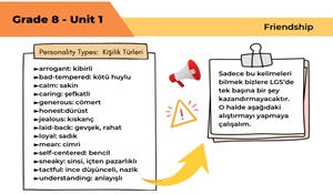 Her ünitenin sonunda 2020 yılından itibaren gerçekleştirilen LGS sınavlarında çıkmış sorulardan örnek sorular verilmiştir.